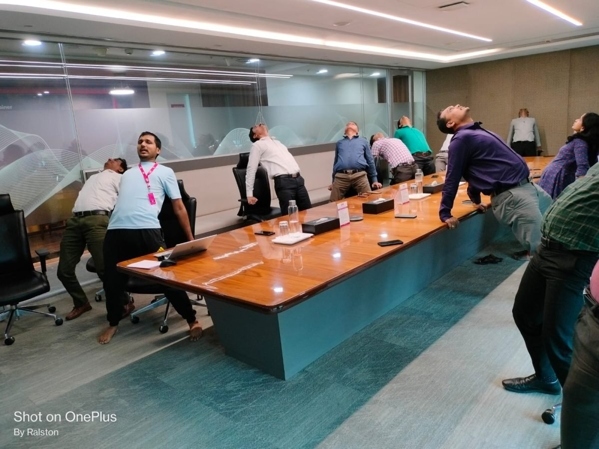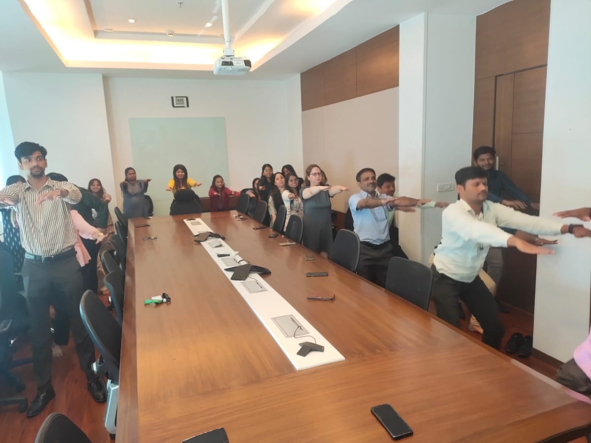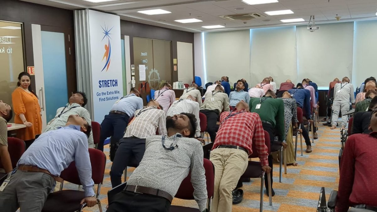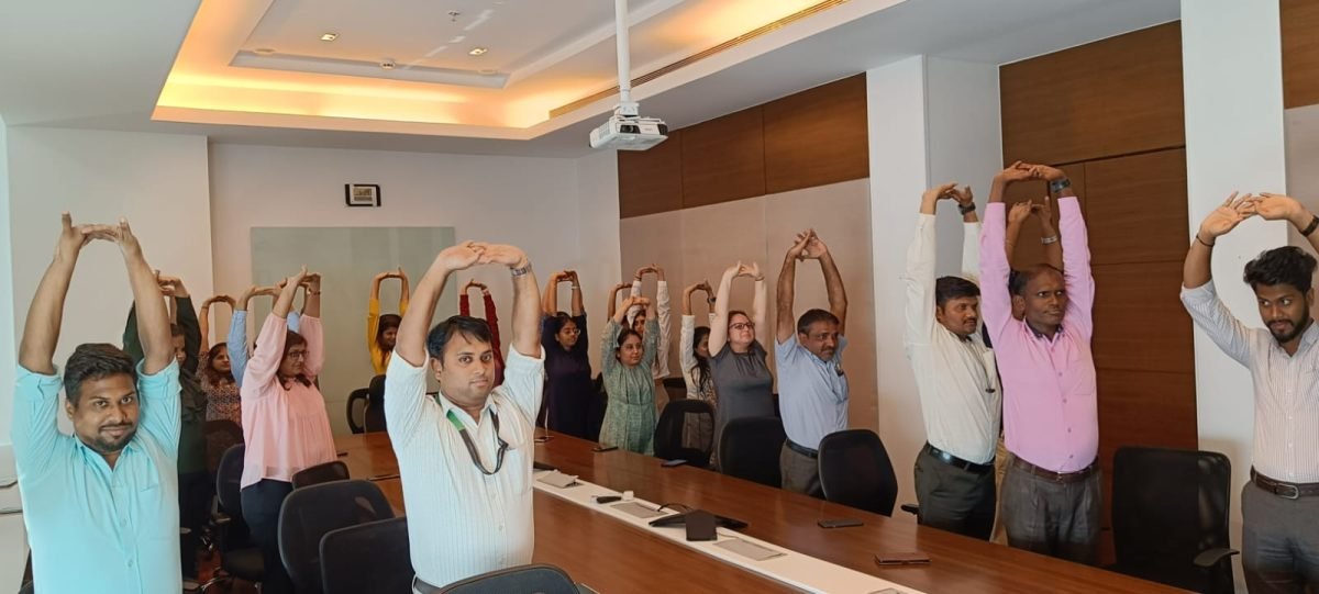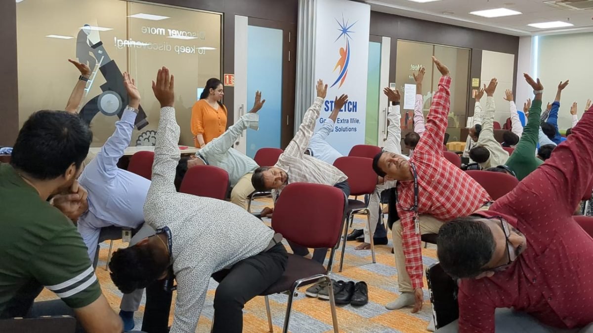 The session focused on de-stressing, deep breathing, and flexibility, helping employees improve focus and recharge their energy for the day ahead.