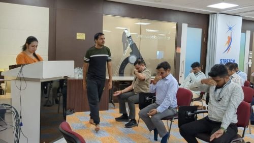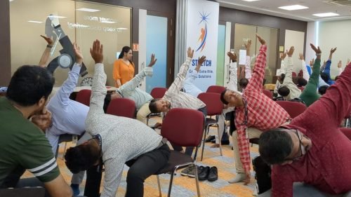 The session focused on stress relief, mindful breathing, and physical flexibility, helping employees reconnect with their bodies and minds amid their busy schedules.